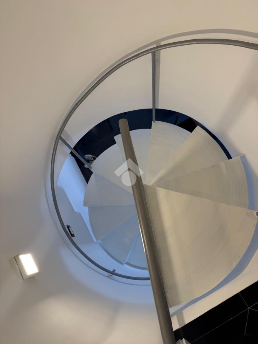 Elemento distintivo della proprietà è la scala di design che conduce al piano superiore, dove si trova una seconda camera matrimoniale privata, con bagno en suite dotato di vasca da bagno. Uno spazio ideale per garantire privacy o accogliere ospiti con eleganza.