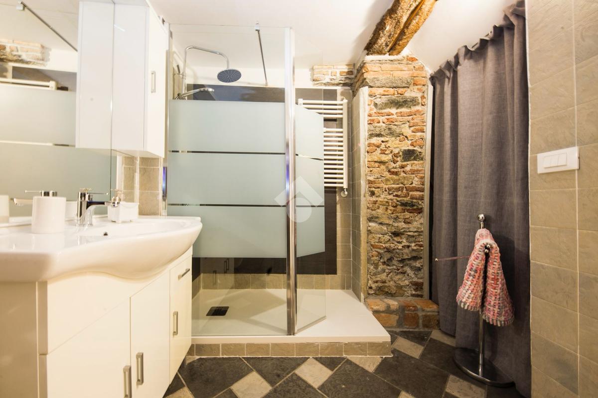 Il bagno, dotato di ampio box doccia, con ripostiglio sottoscala.