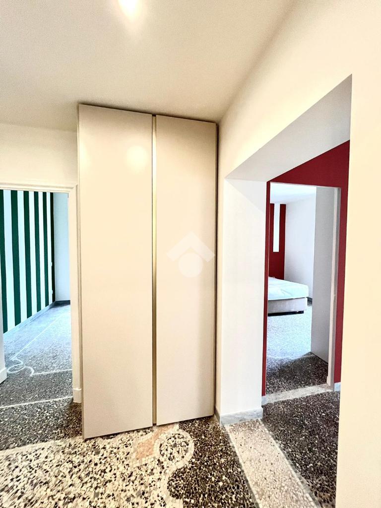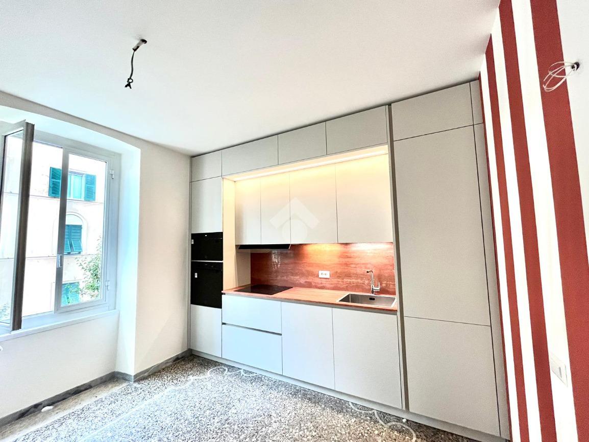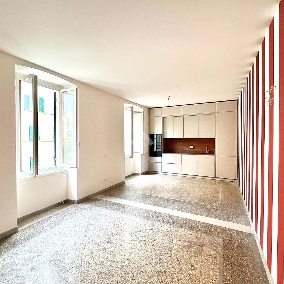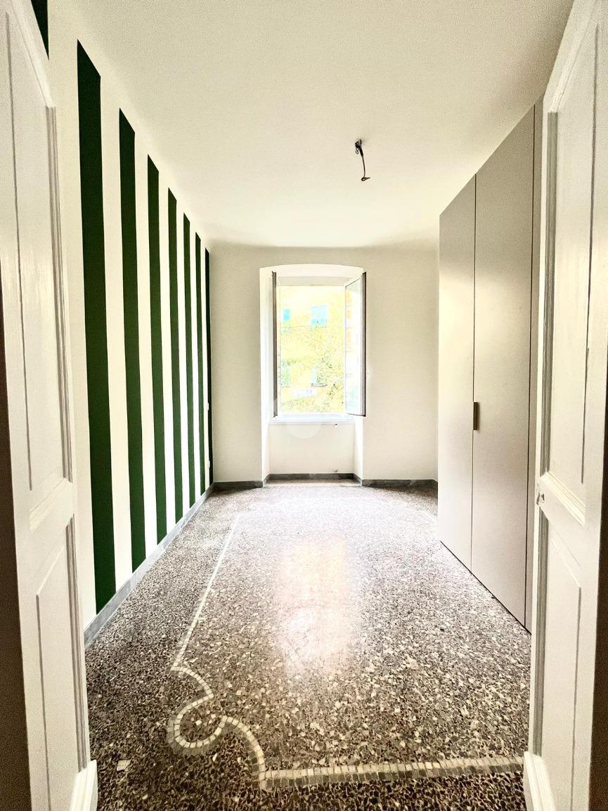 Completamente ristrutturato, l'appartamento offre un ambiente moderno e confortevole, con arredi inclusi di Spazio Giustiniani che ne esaltano la funzionalità, mentre Il pavimento è in stile originario alla genovese.