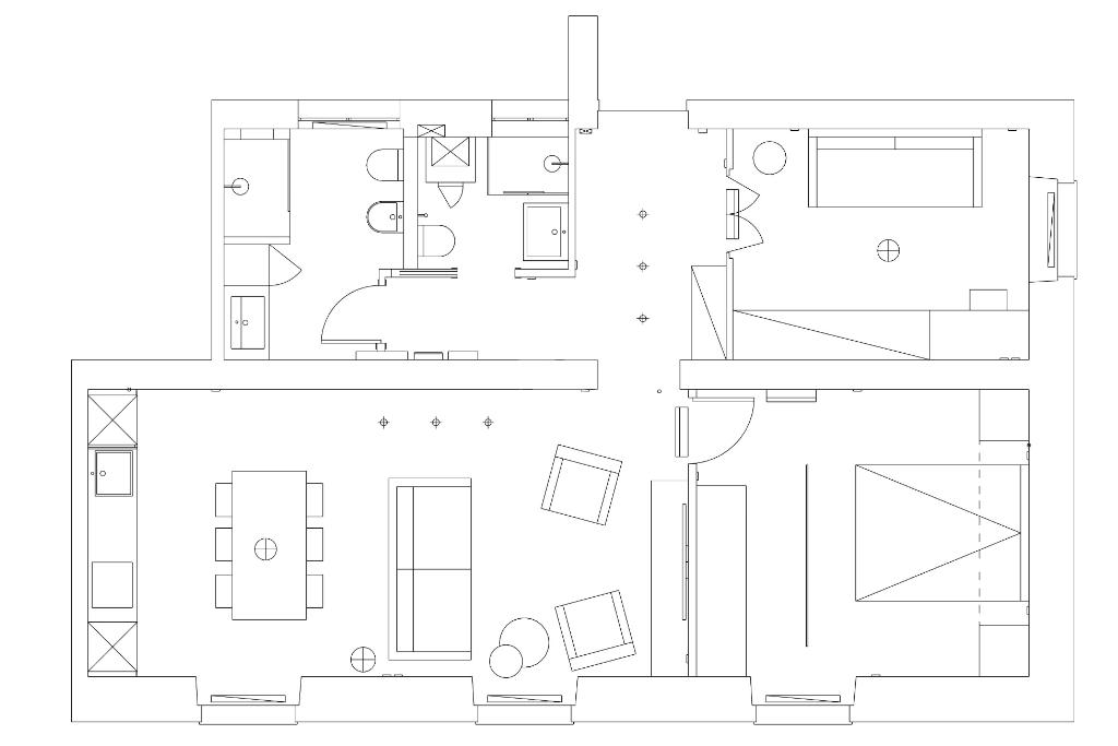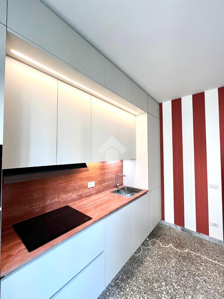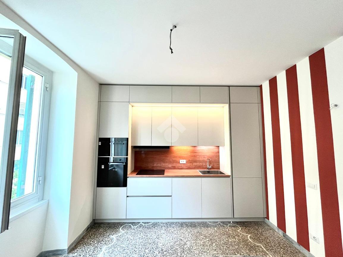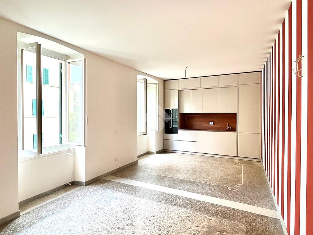Completamente ristrutturato, l'appartamento offre un ambiente moderno e confortevole, con arredi inclusi di Spazio Giustiniani che ne esaltano la funzionalità, mentre Il pavimento è in stile originario alla genovese.