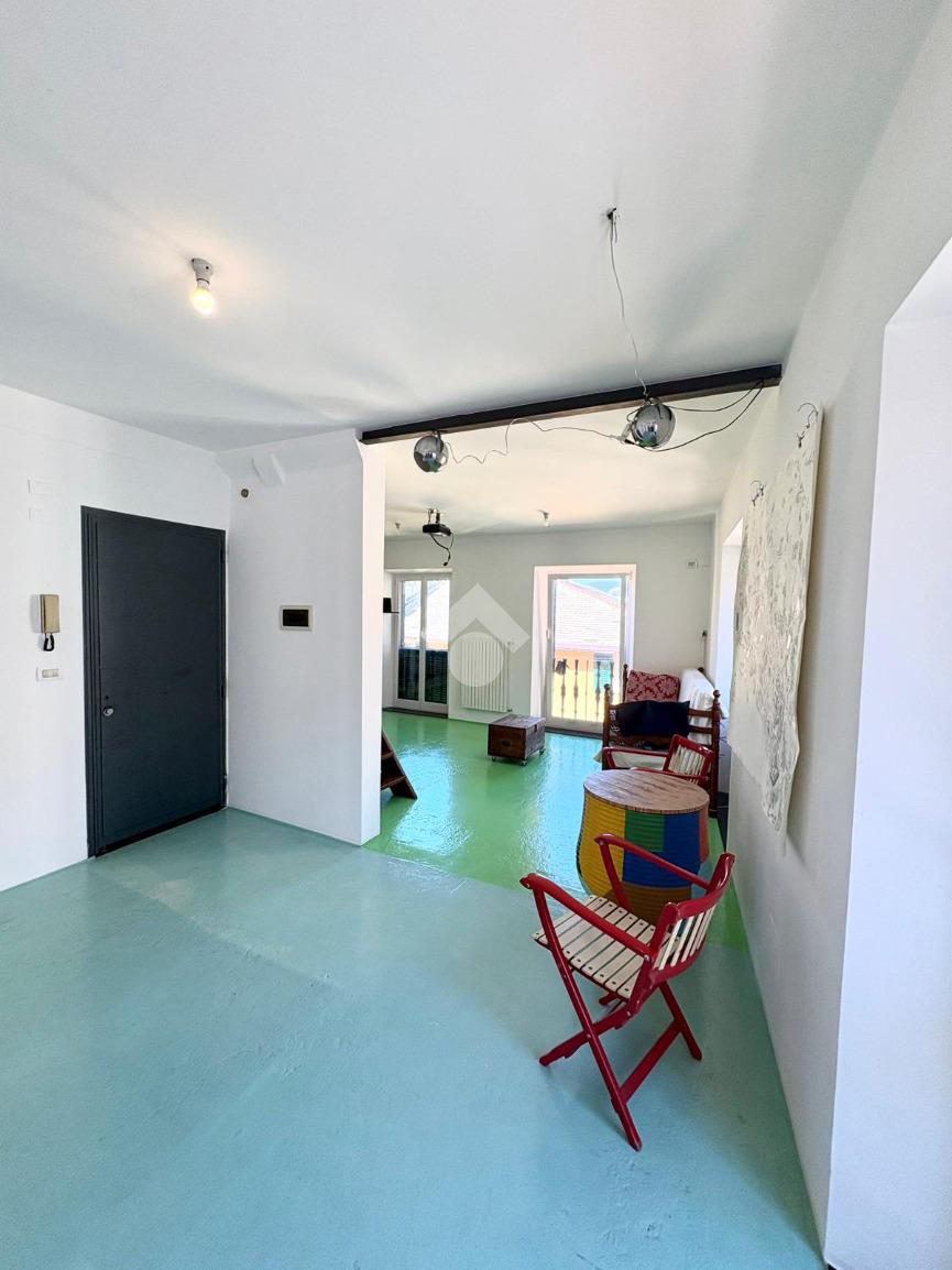 Attualmente In tutta la casa il pavimento è in resina bicomponente colorata, ma con la possibilità di posare un nuovo pavimento, avendo già lasciato lo spazio di circa 2cm con le finestre ed il portone. Il riscaldamento è autonomo.