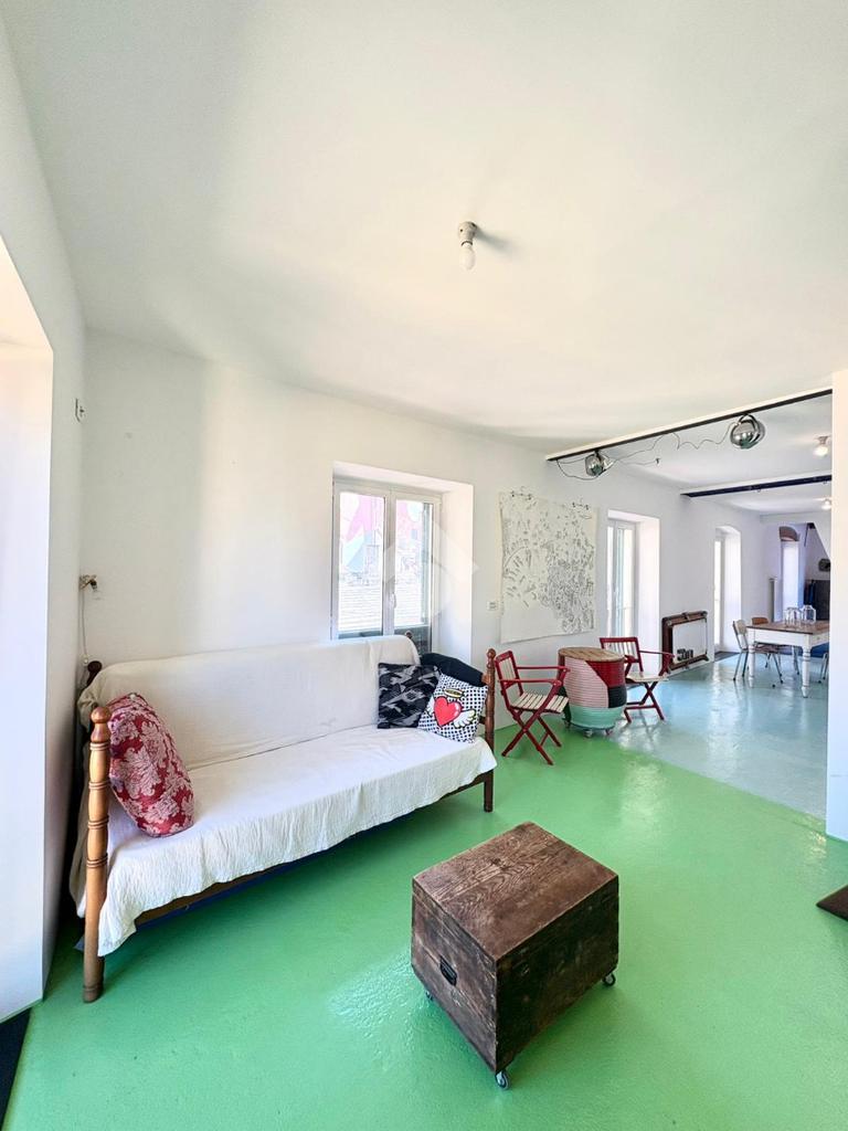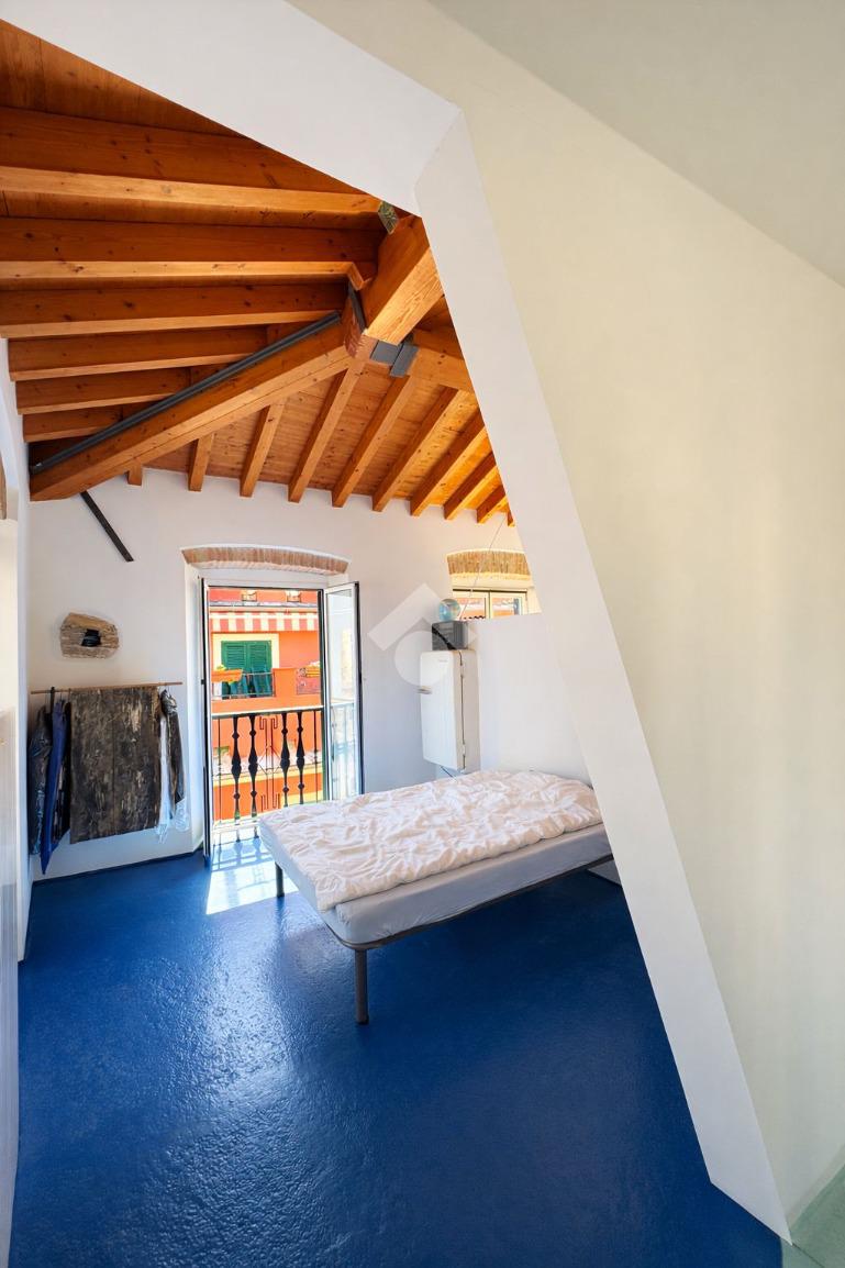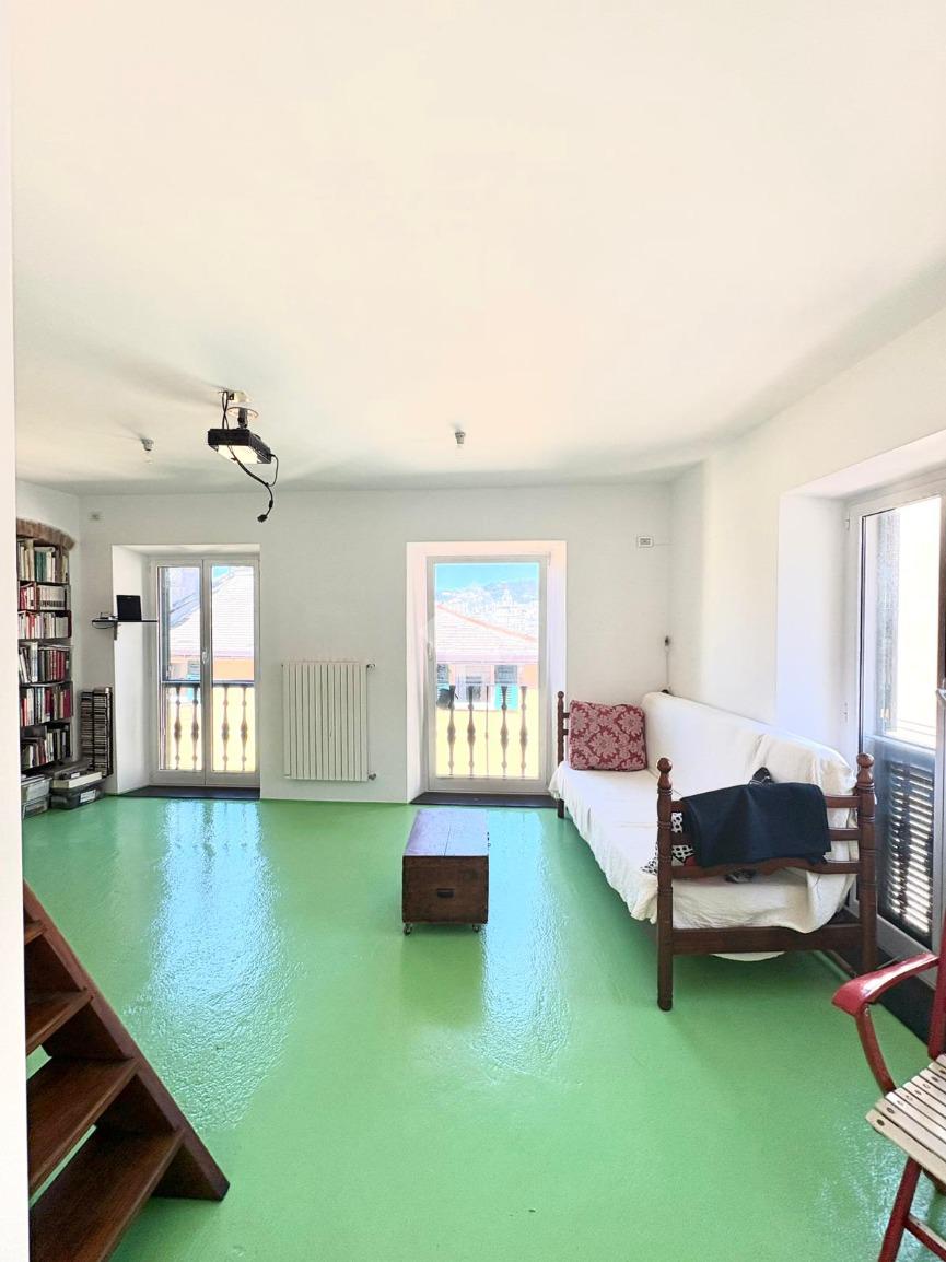 L'ingresso è direttamente in un ampia e luminosa zona living, attualmete composta da un unico grande open space di circa 60Mq, dove vi è la possibilità di ricreare una zona Sala/cucina ad angolo e creare una seconda camera da letto. La cucina attualmente è vivibile con travi a vista. Dalla zona giono possiamo accedere direttamente ad uno dei terrazzi più belli di tutta Genova, con una vista panoramica su tutta la città.